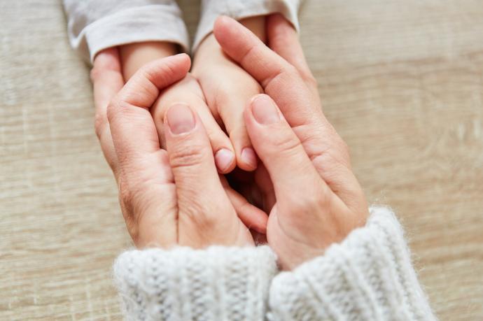Express with actions "Do you want me to hold your hand?"